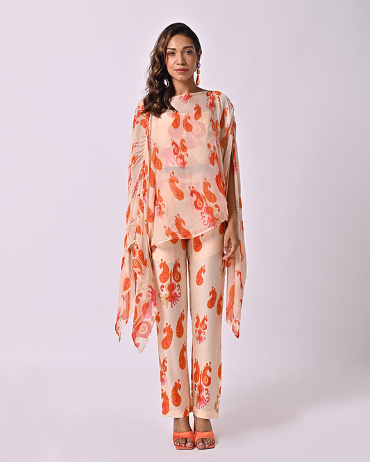 Peach Ikat Asymmetric Top
