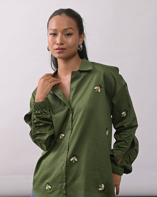 Green Bee Embroidered Shirt