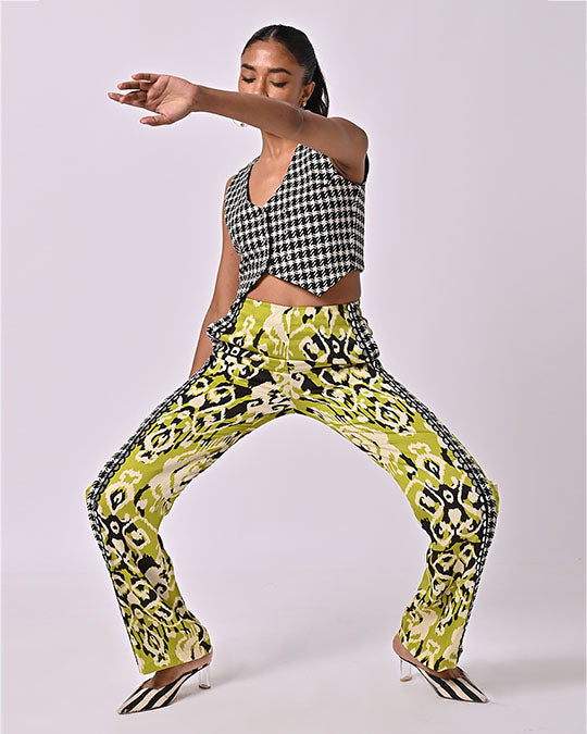 Get the in-trend waistcoat style with a beautiful houndstooth pattern.