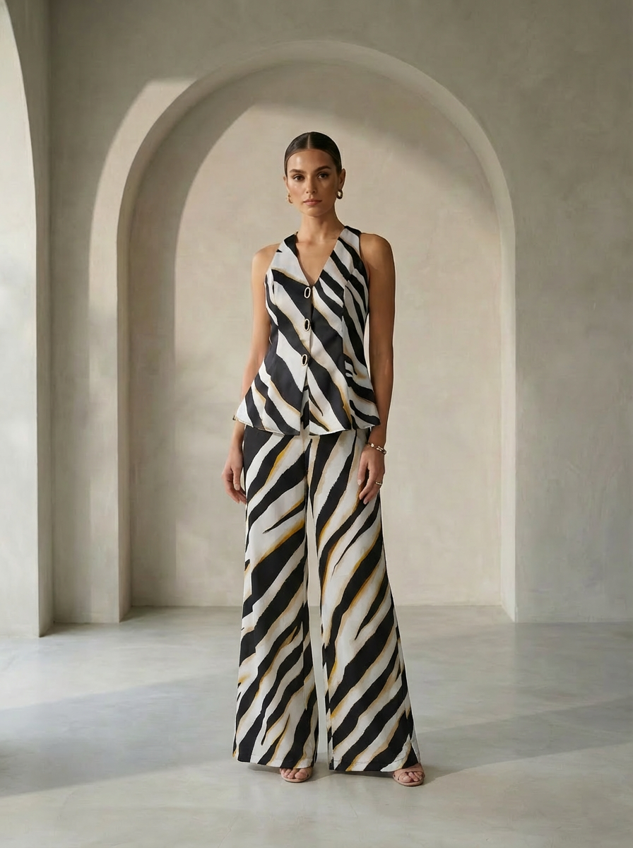 Style - High waist, wide leg, printed.