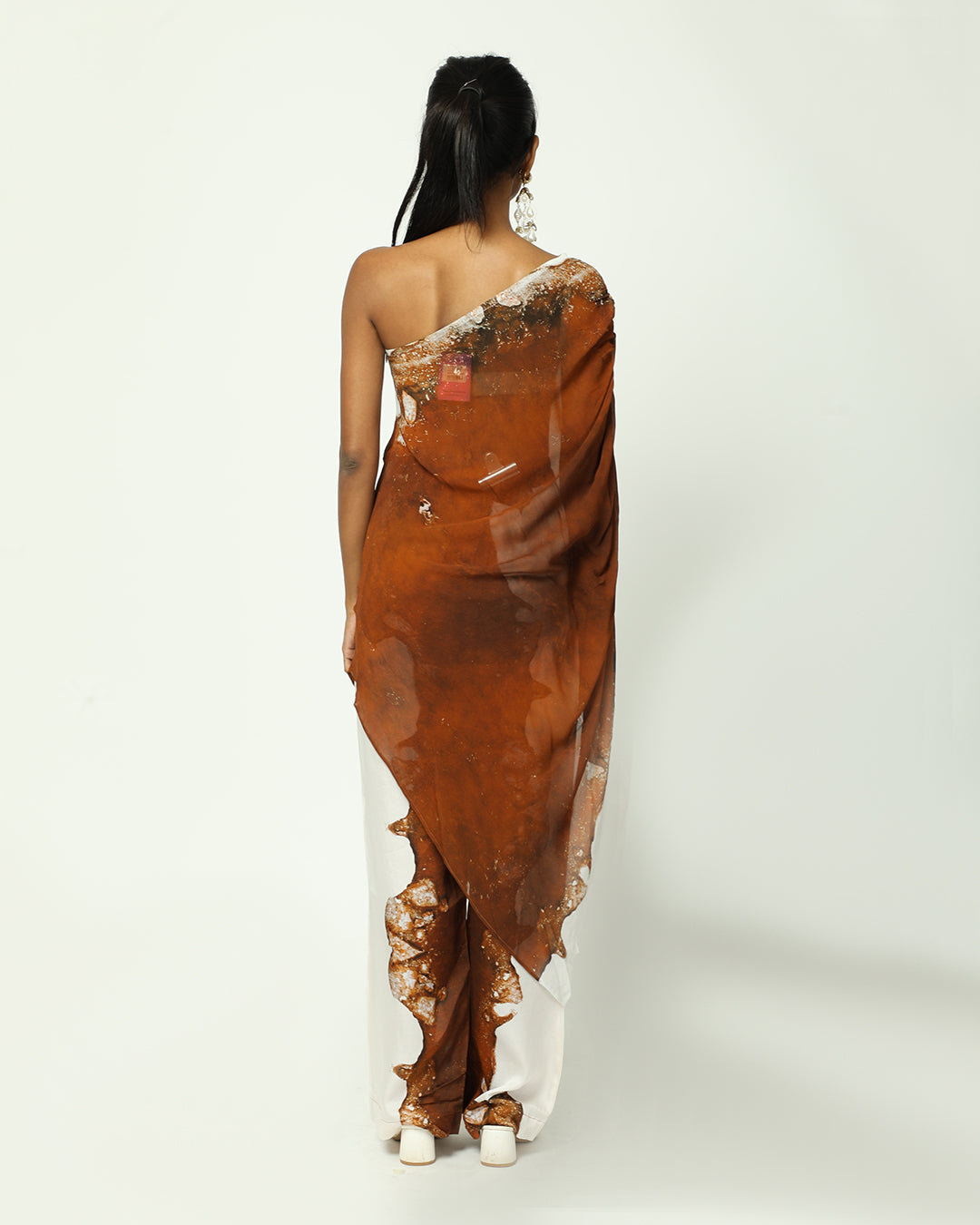 Brown and white with minimal print patterns take this top from 90 to 100 immediately.