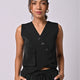 Featuring a soft, asymmetric front and multiple buttons, this utility waistcoat is crafted to elevate your style.