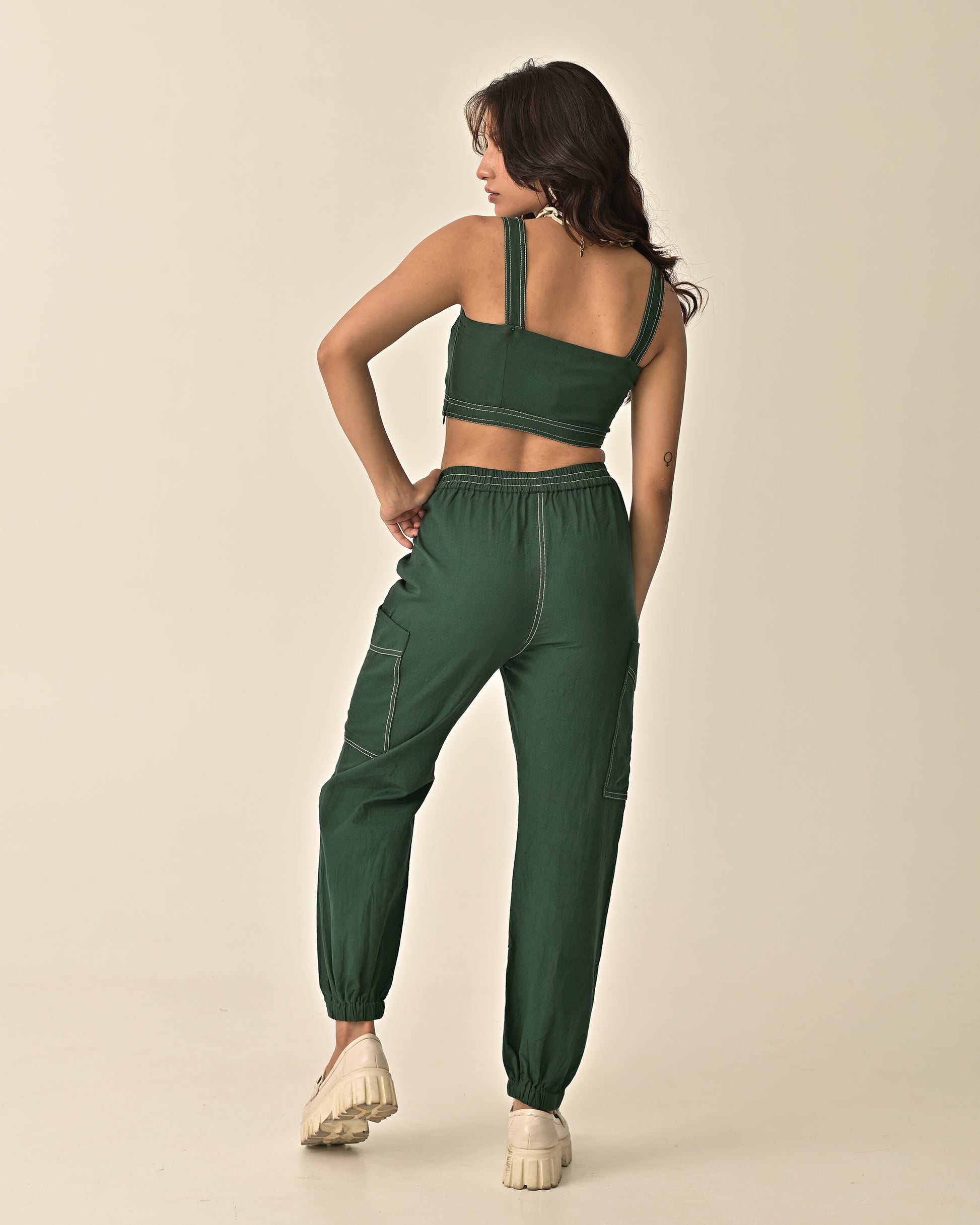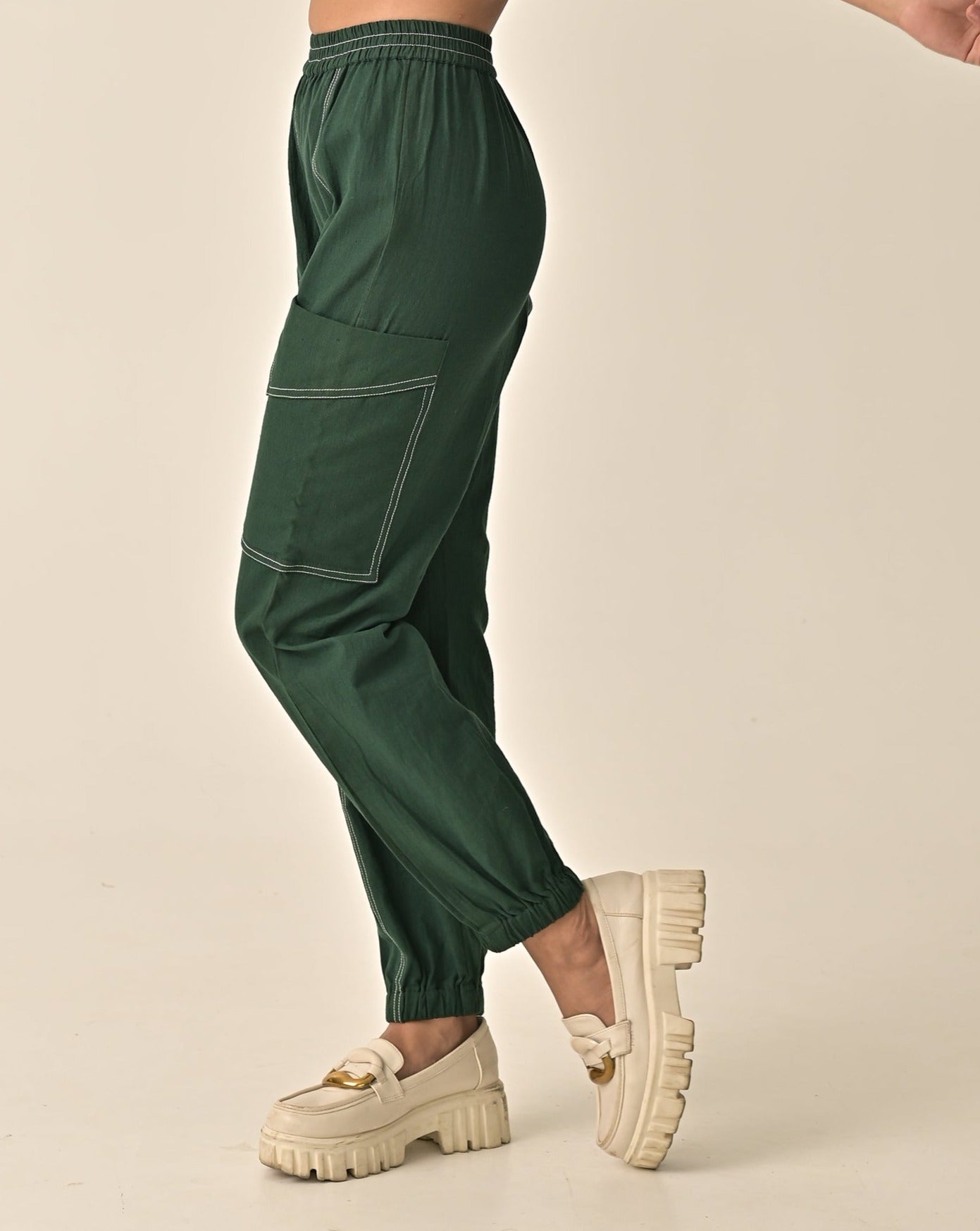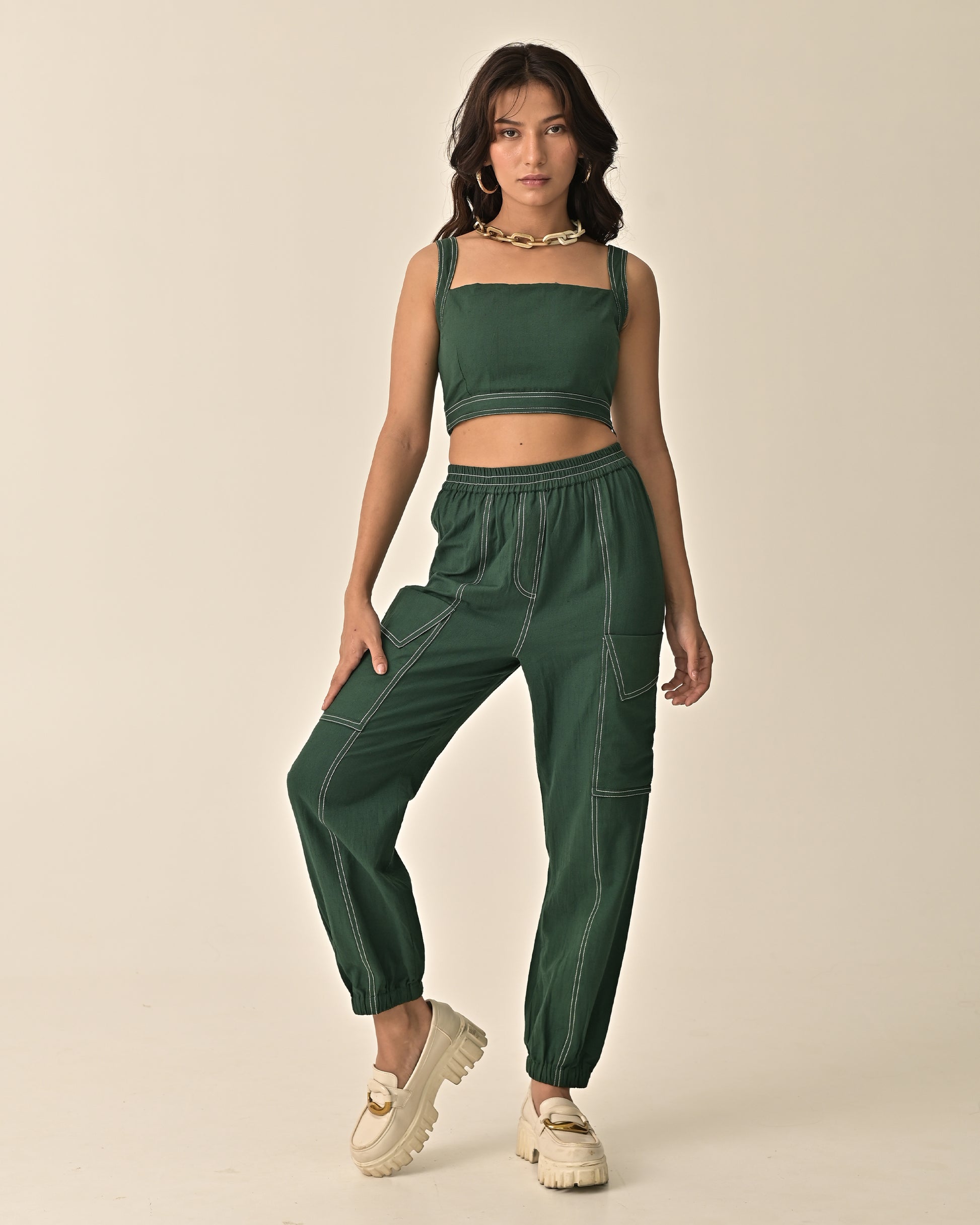 The green jogger pants are designed to ensure optimum room for ease of movement.