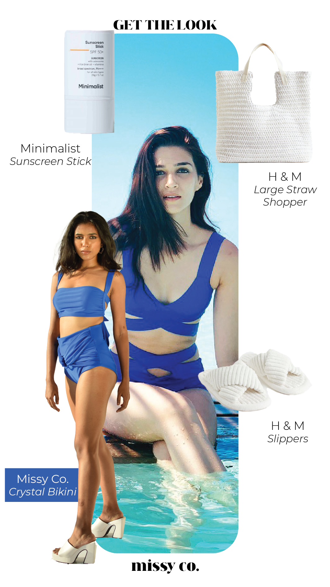 Put on some sunscreen and hop in the pool in this cool colored duo.