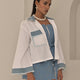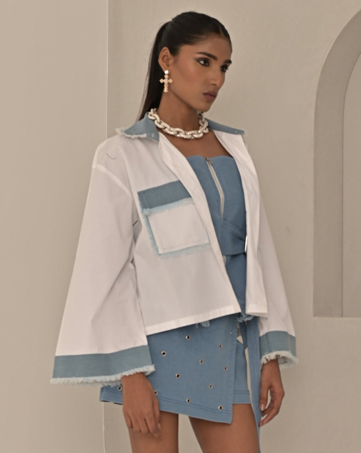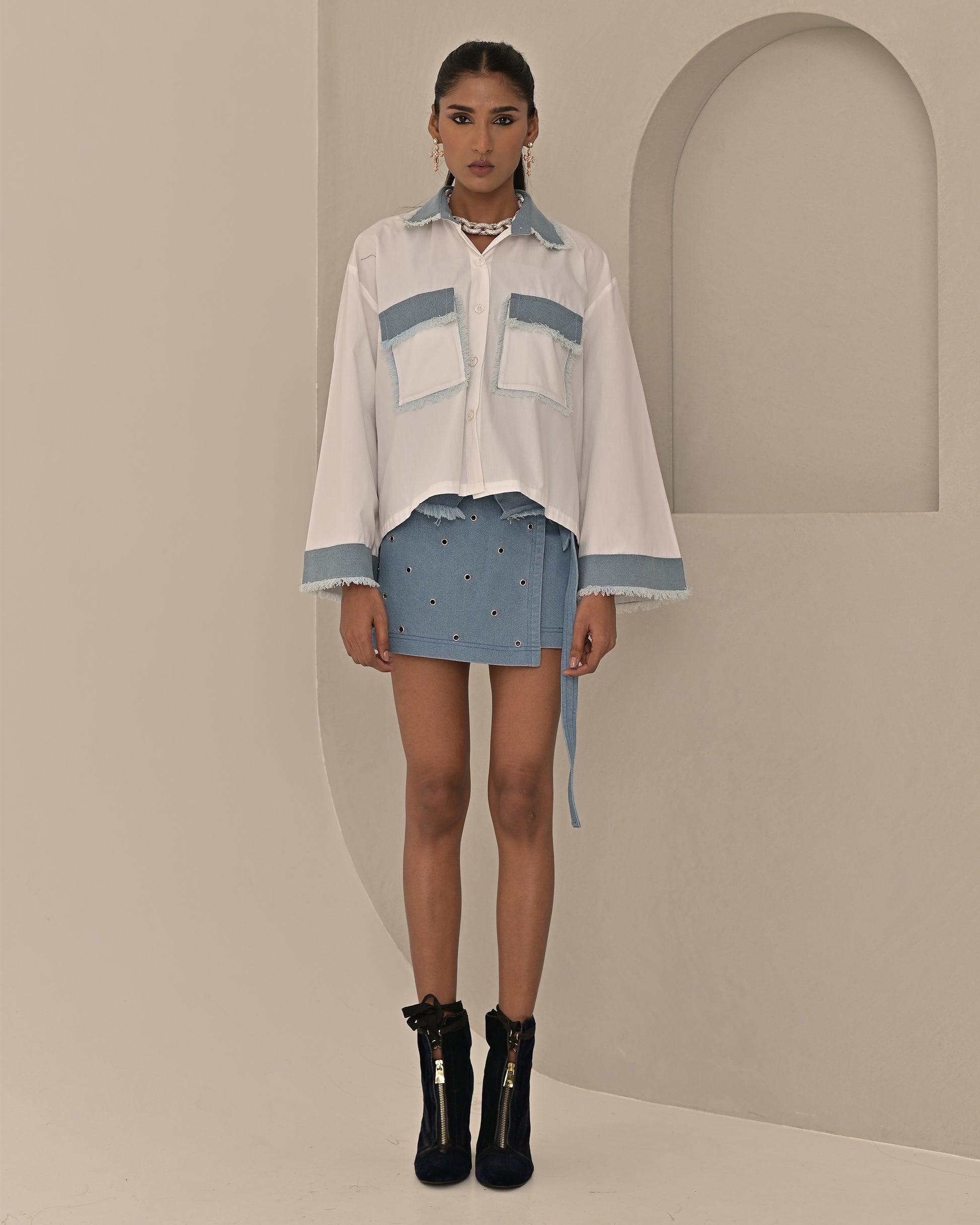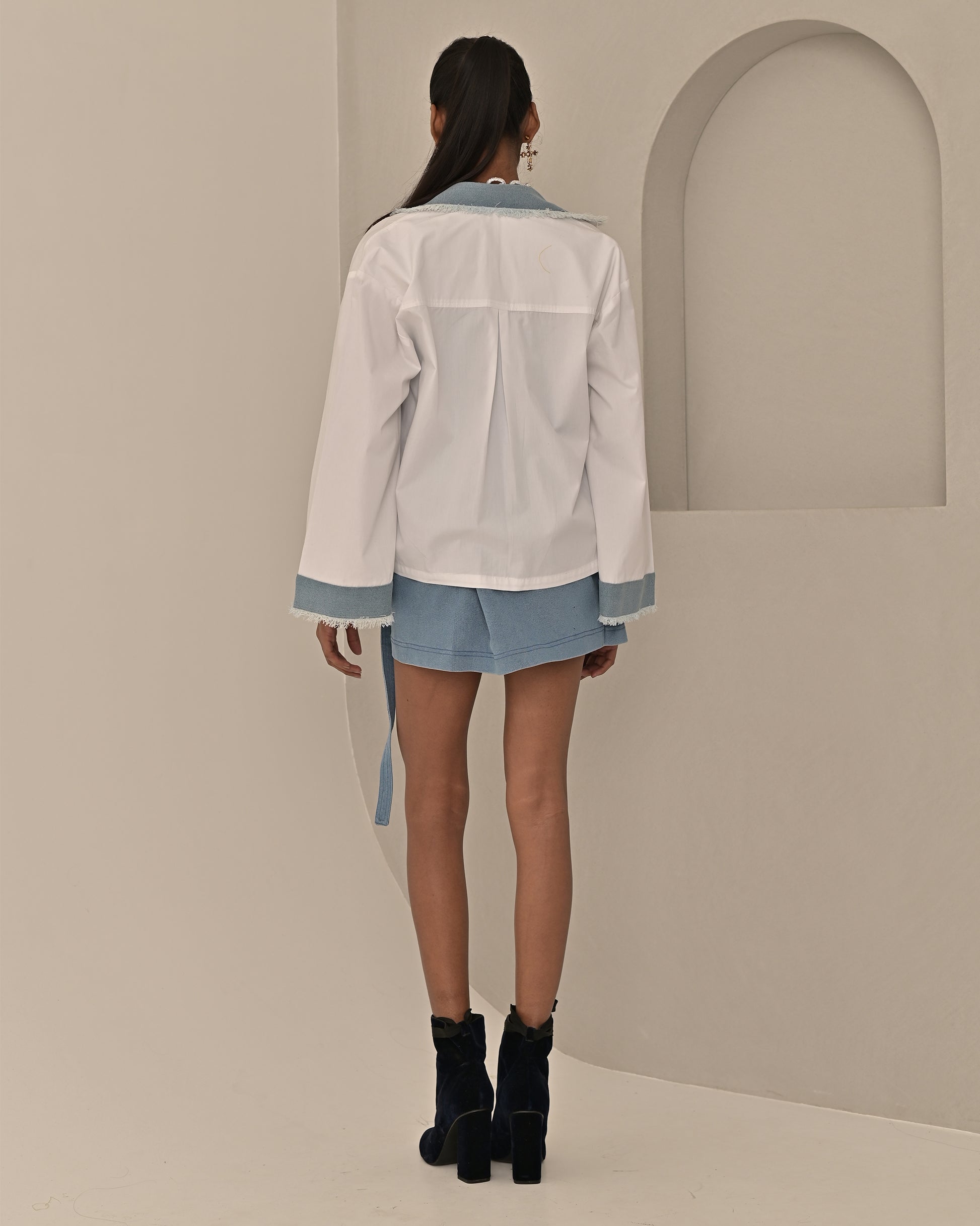 Whether you're dressing up for a night out or keeping it casual for brunch with friends, this versatile white + denim combo shirt has got you covered.