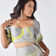 An abstract print corset top that makes you feel chic with flouncy sleeves and and a classic sweetheart neckline.