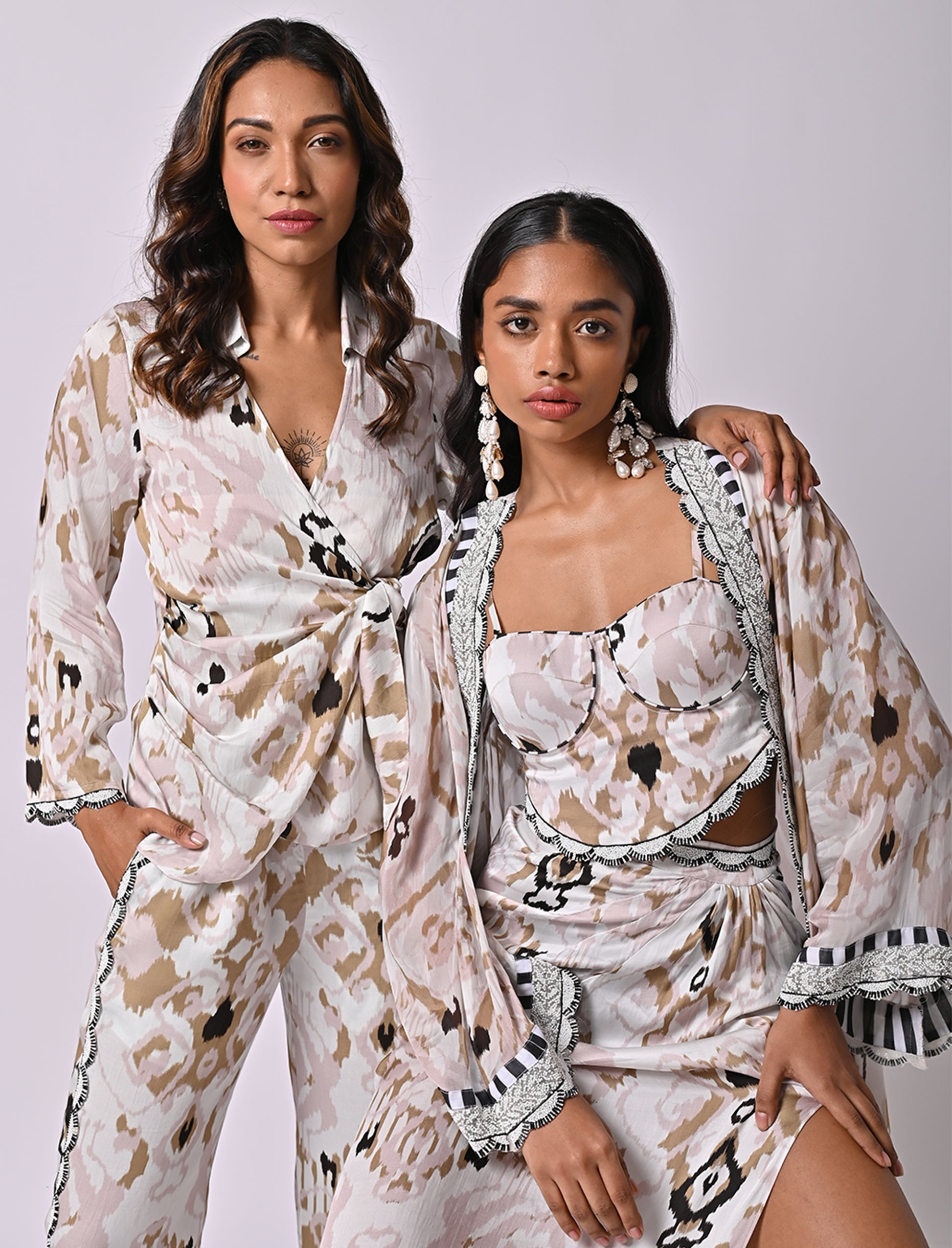 A formal wrap around top with delicate embroidery to light up this festive season.