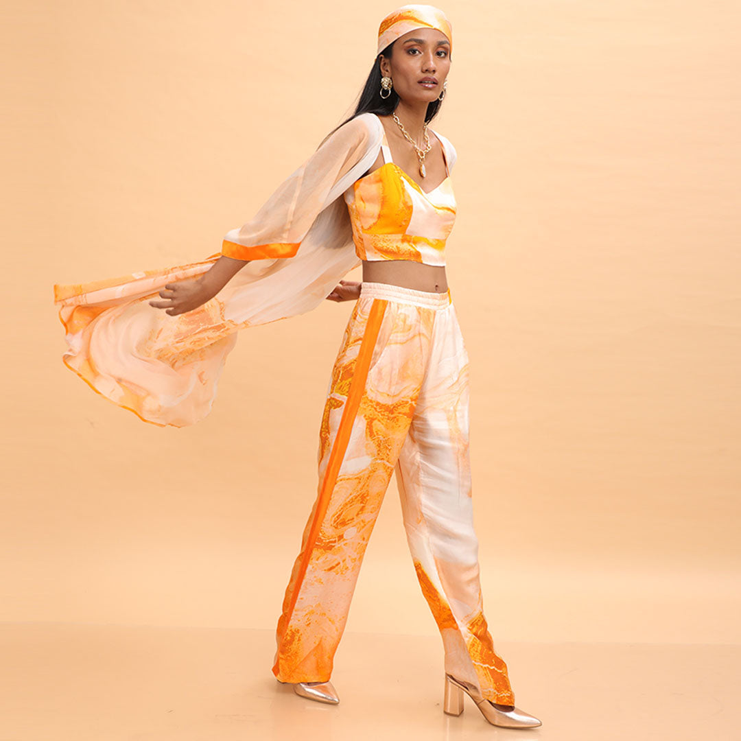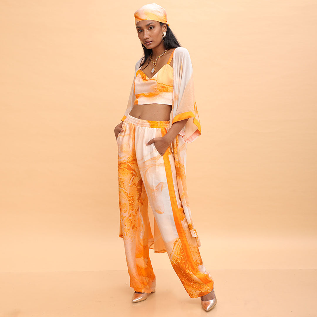An effortless, sunshine hued pant with pockets and a beautiful abstract print.