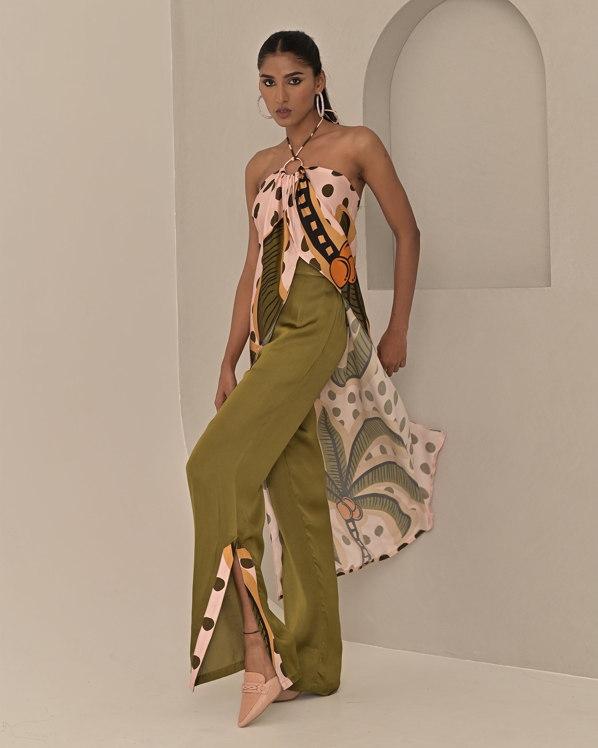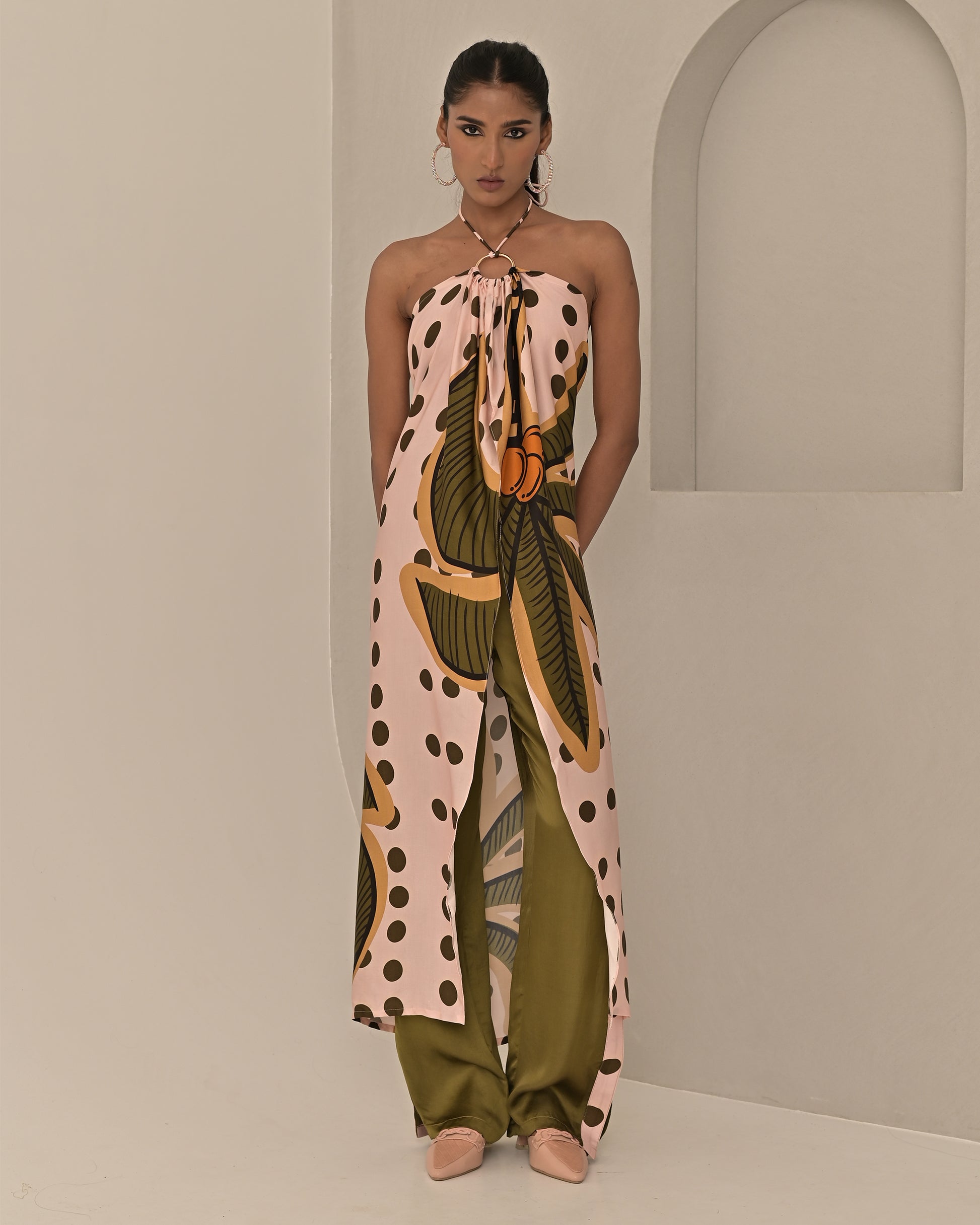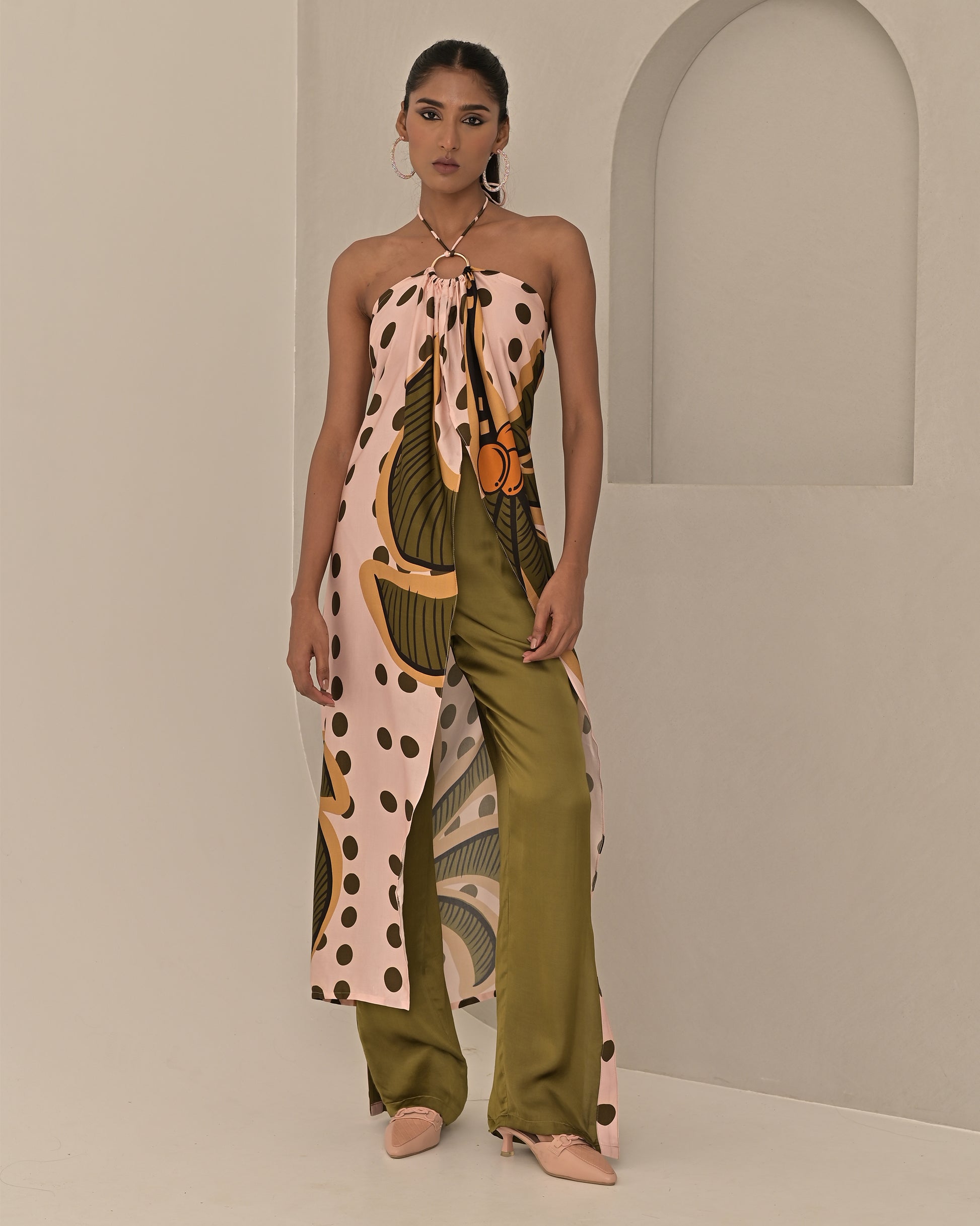 The vibrant color with abstract prints run through the garment for that extra oomph!