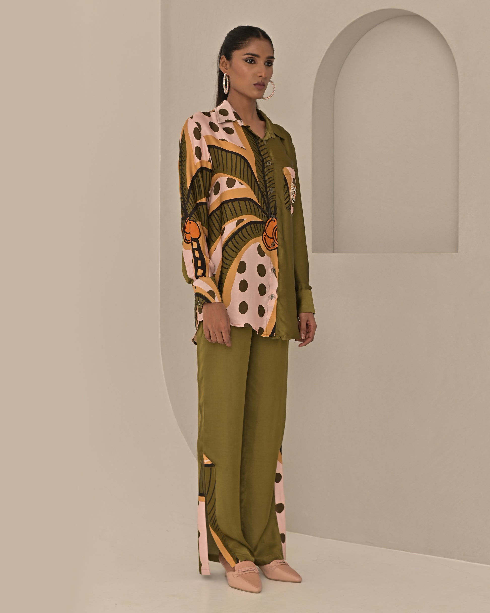 The vibrant color with abstract prints run through the garment for that extra oomph!