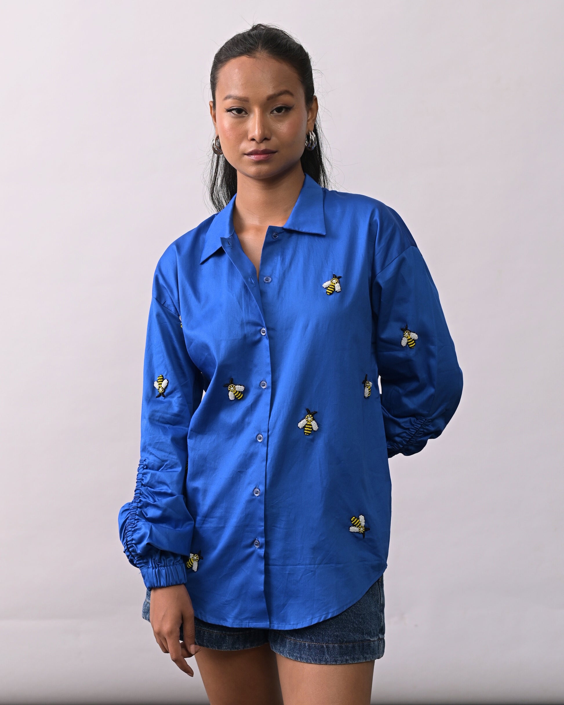 Blue Bee Embroidered Shirt