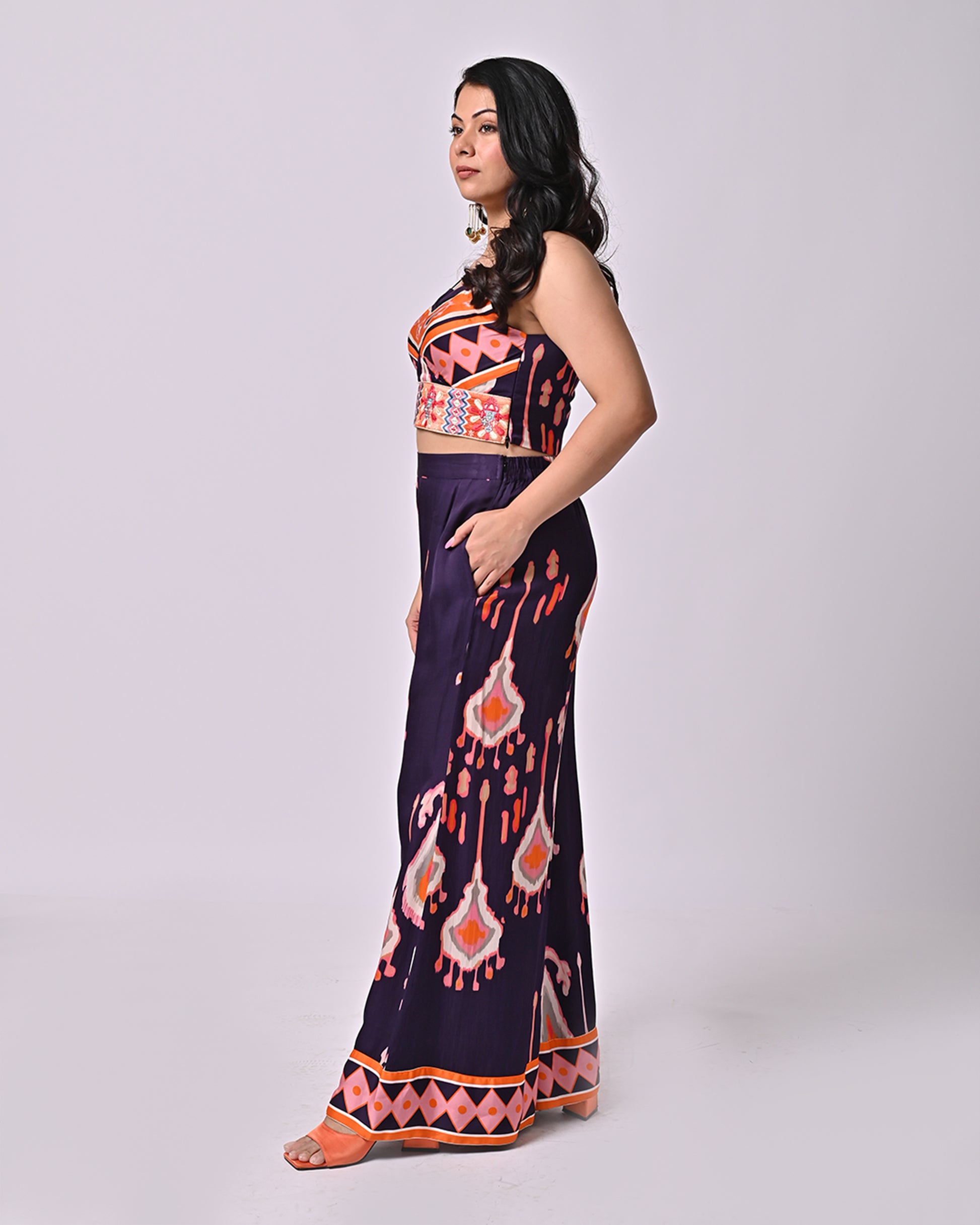 The regal purple hue with ethnic prints embrace the trend, creating a captivating ensemble.