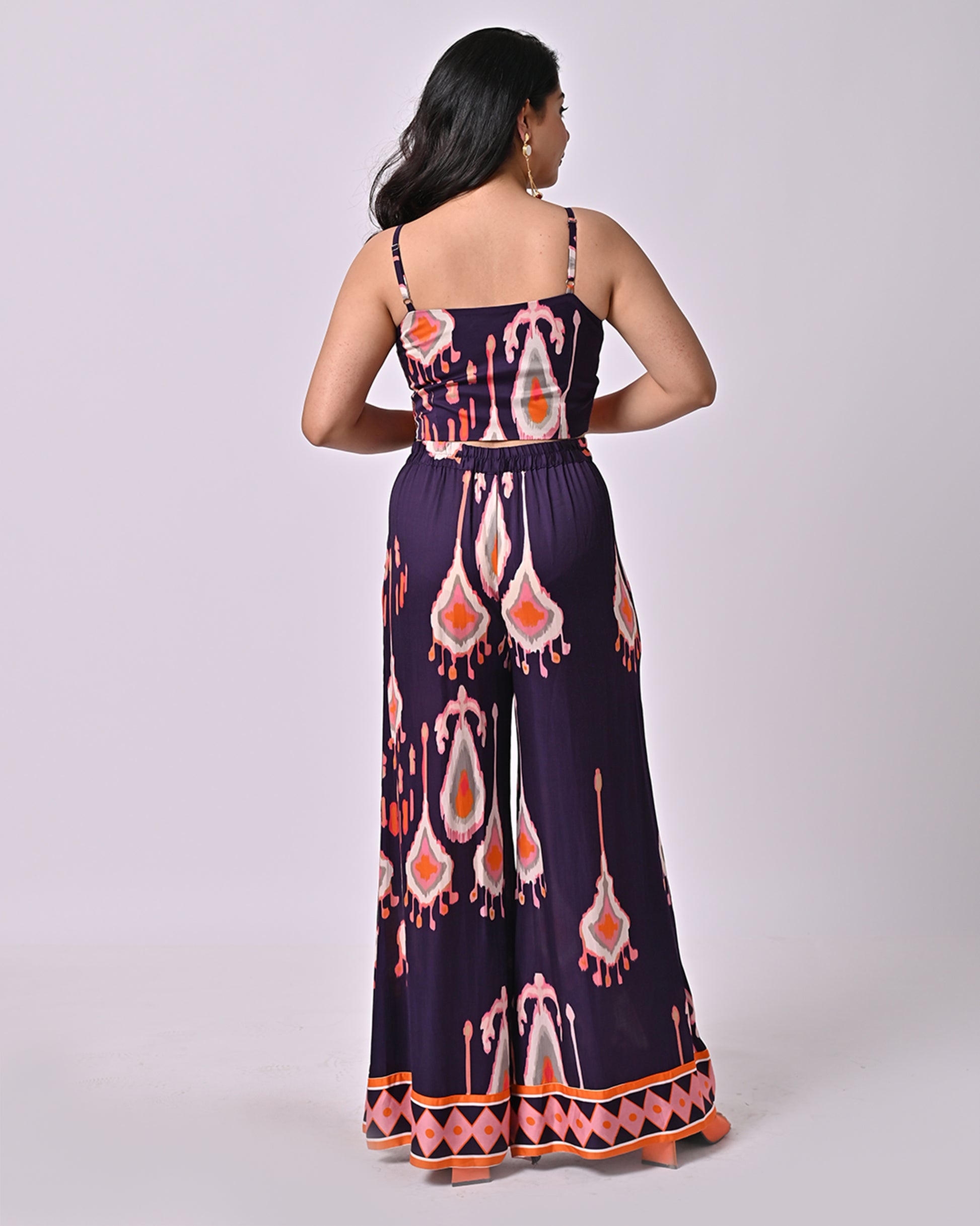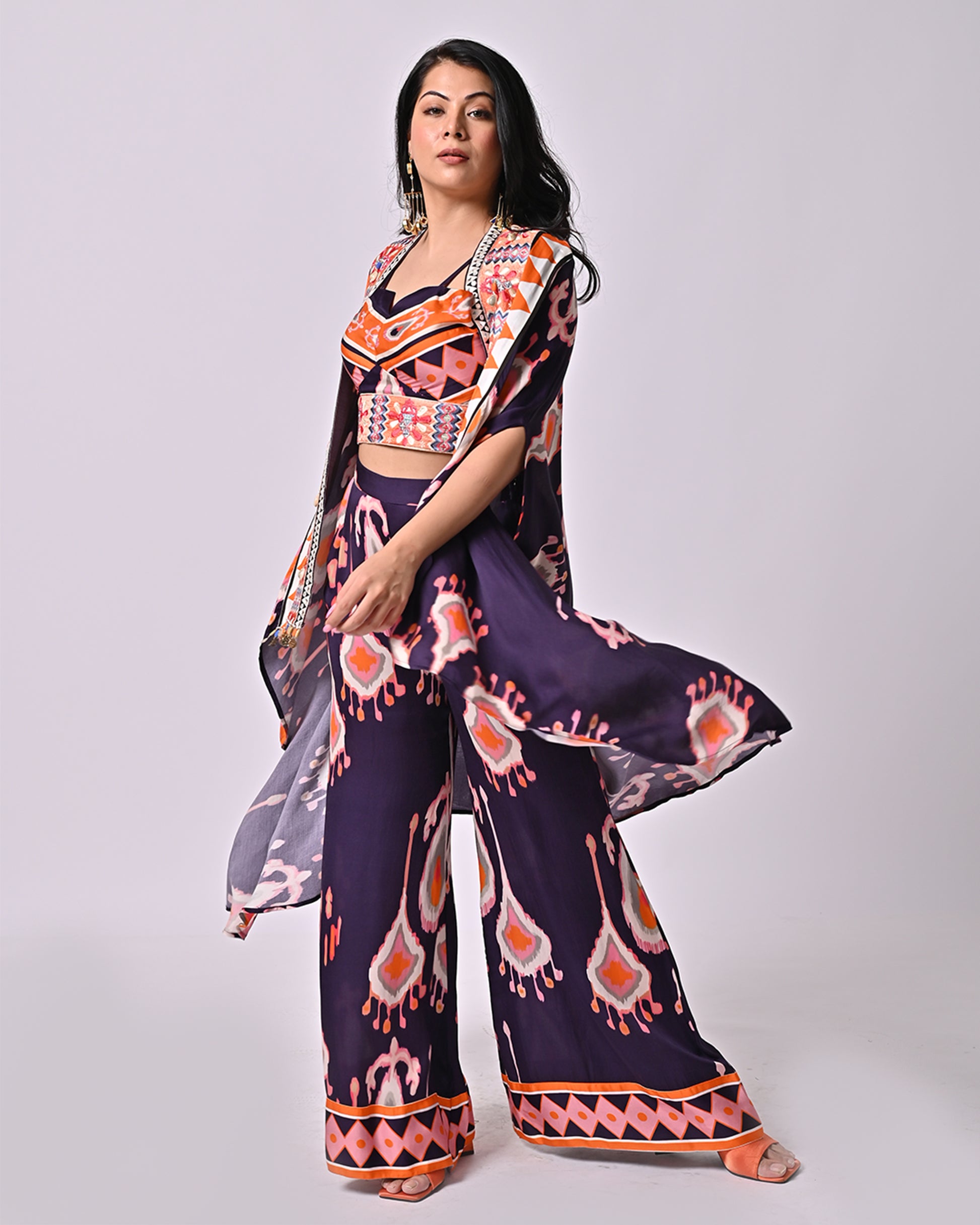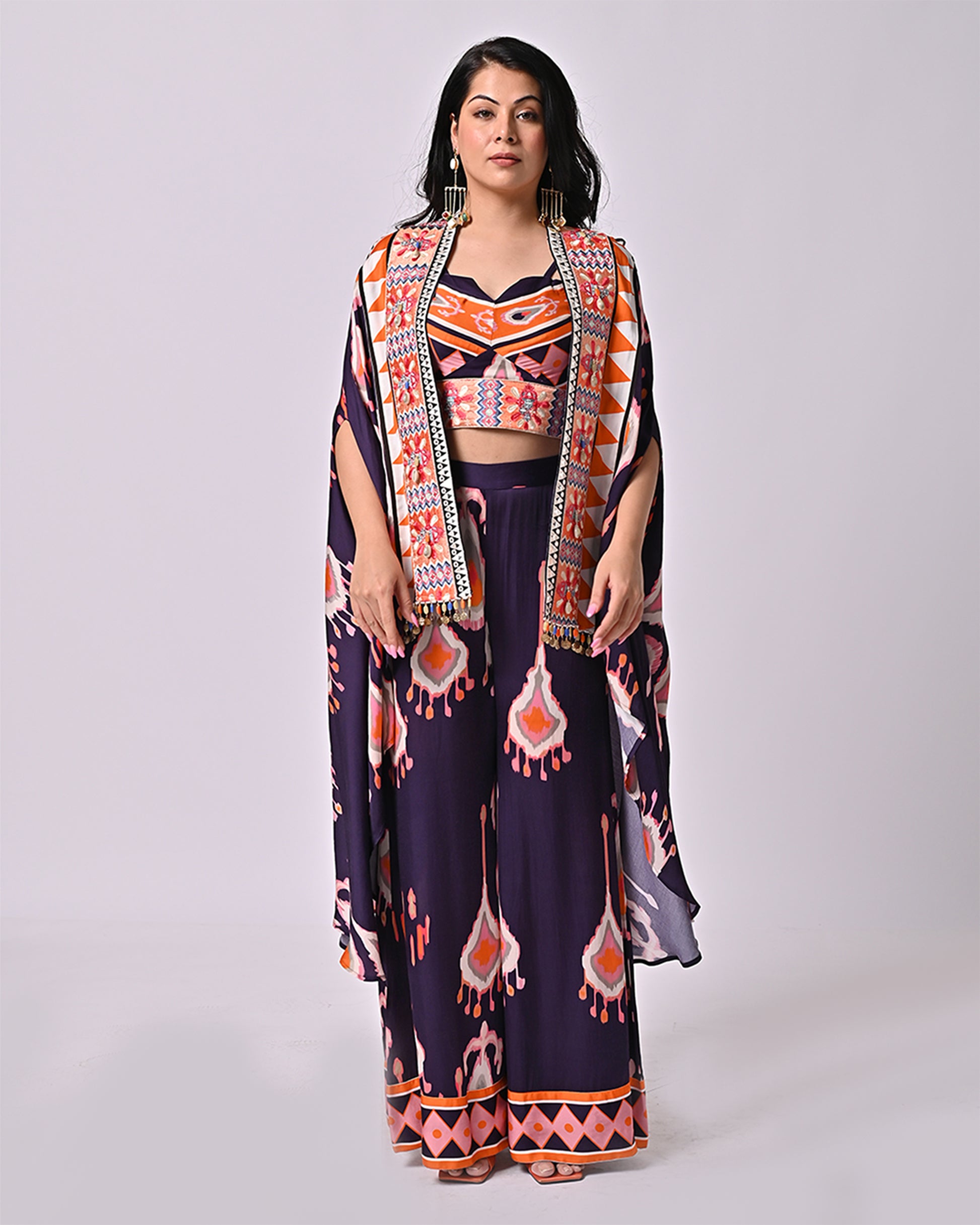 The regal purple hue in ethnic prints embrace the trend, creating a captivating ensemble.