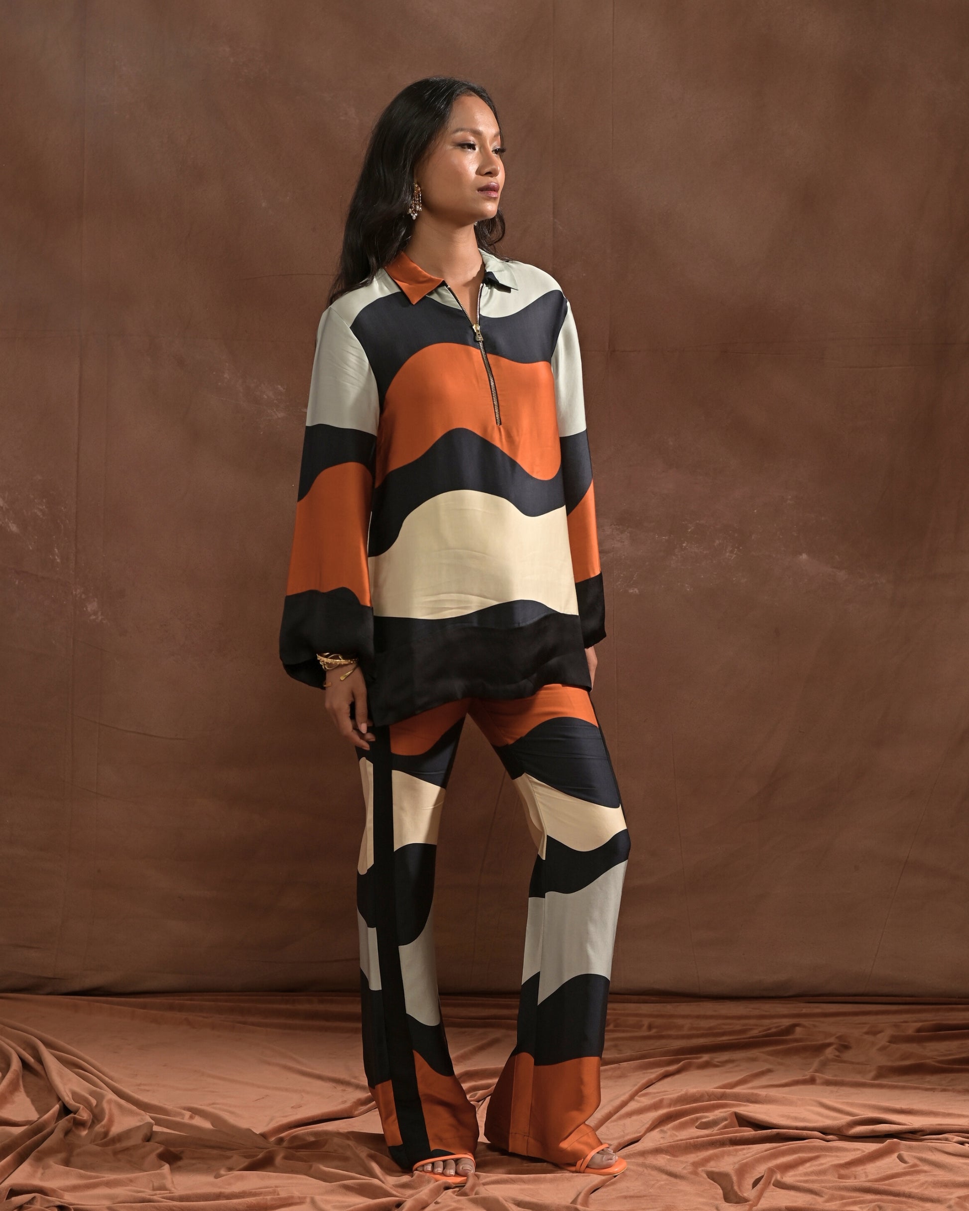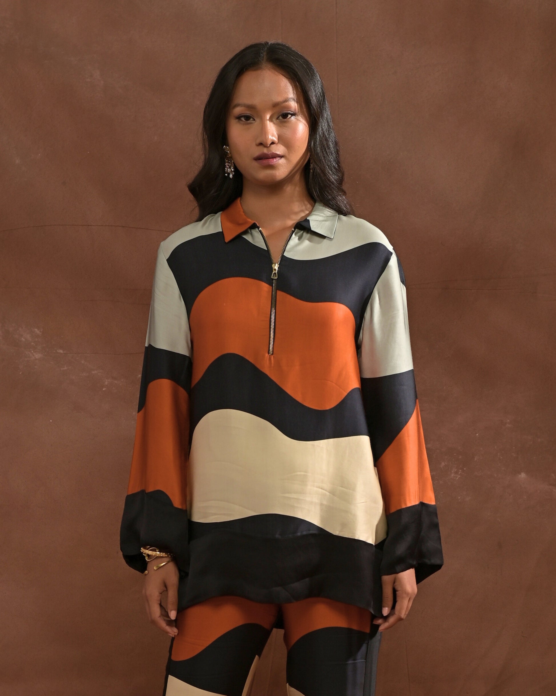 Style - Zip collar, wide full sleeve, printed.