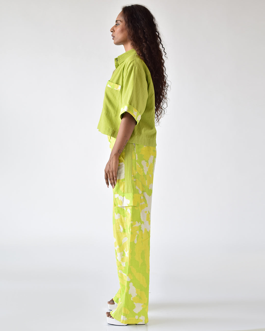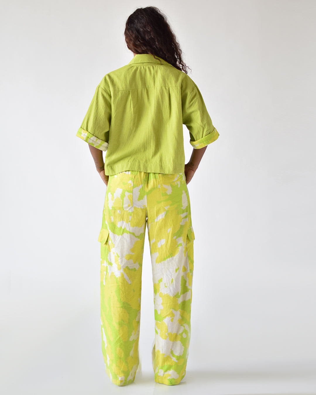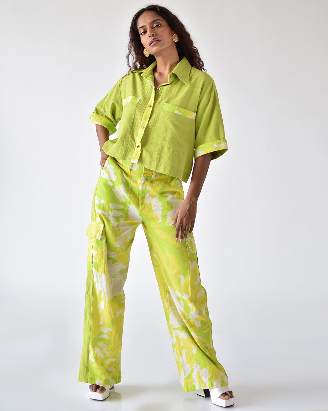 A relaxed fit cropped shirt with delicate abstract print details in a refreshing summer color.