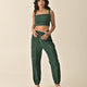 The green crop top and jogger pants are designed to ensure optimum room for ease of movement.