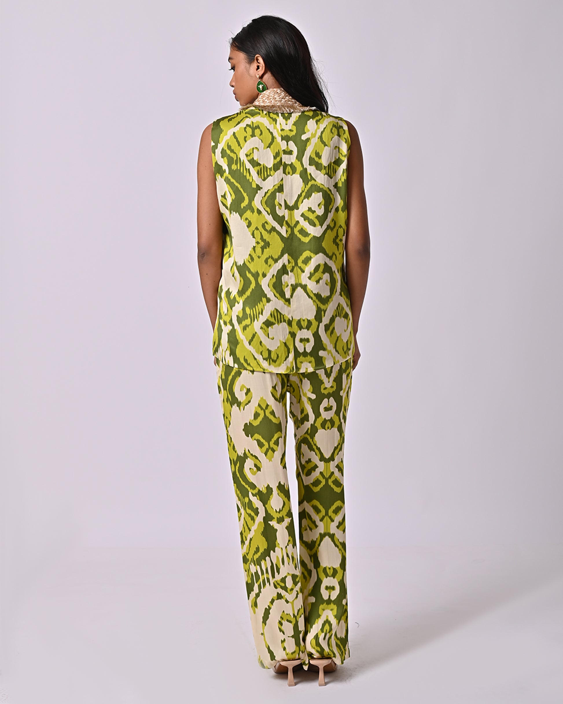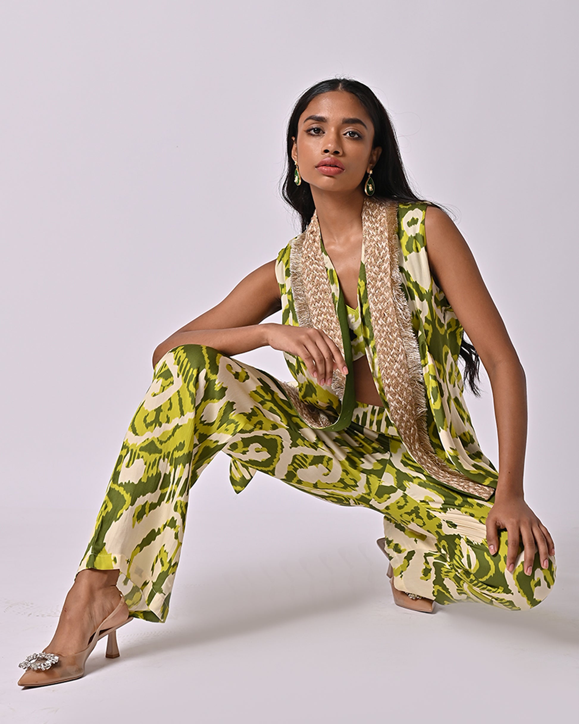 This cape jacket beautifully combines the richness of Indian textures with a contemporary style.